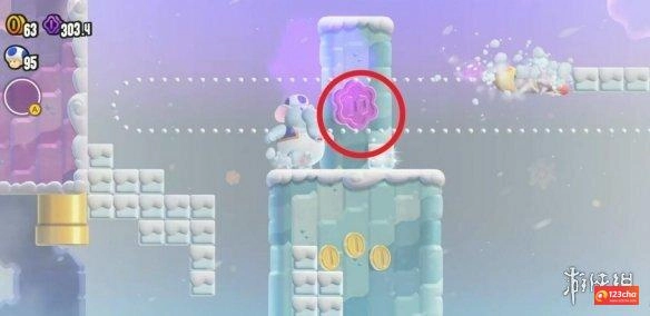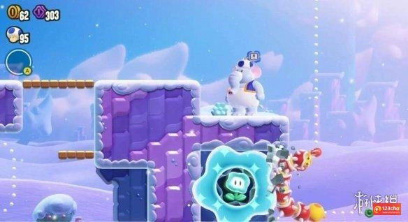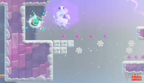 4、本关卡的惊奇种子藏在终点左边的角落里,需要借助暴风雪形成的雪堆跳过去才能拿到。