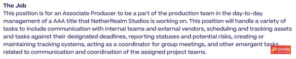 具体来说,副制作人的职位说明里明确指出,该岗位要负责“NetherRealm Studios 正在开发的 AAA 级游戏的日常运营与管理工作”,这意味着这款新作会有极高的制作标准和充足的资源支持。而高级动画师的岗位描述则进一步透露,游戏将设有极具吸引力的“战役模式”,并且这个战役模式会结合“高品质的动画电影”,让玩家获得前所未有的沉浸式体验。