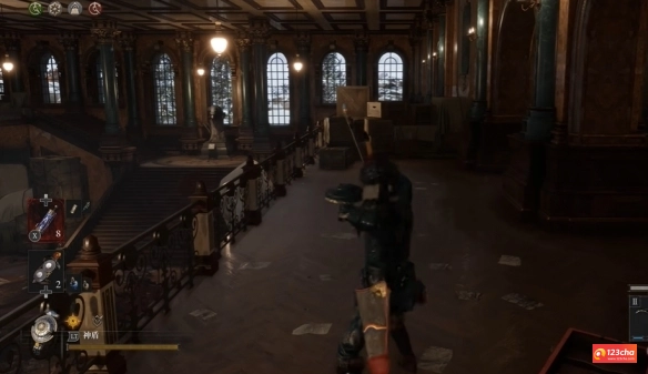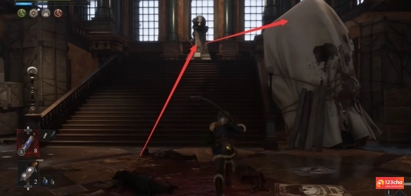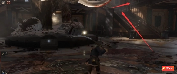 4、在尽头可以到达一个大厅,然后上楼梯右拐。