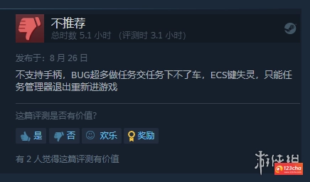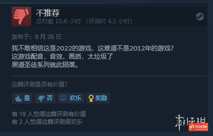 该作的好评率仅为61%,褒贬不一,很多网友表示该作看起来实在是太“过时”了,还有网友反馈了手柄不兼容的问题,而在最新的更新上线了之后,购买了该作的DLC的玩家纷纷反馈表示自己花钱买的DLC一更新就全部都没了。