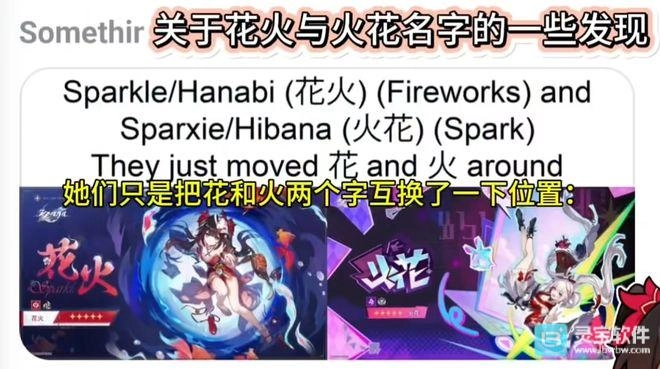 “火花”作为“花火”的SP形态,其命名方式延续了“大黑塔”等角色的换字传统。官方设定暗示其可能是一位虚拟主播,早在3.8版本上线的遗器“直播间的千窗万面”故事中,虚拟主播“花奈咪”的经历就已埋下伏笔,其角色外貌细节与火花高度吻合。