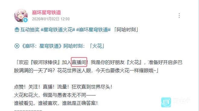 “花奈咪”生日会被黑客入侵、观众一整晚都在和假主播互动的荒诞经历,其核心与“欢愉”命途的讽刺意味及反转内核高度契合。玩家们猜测火花或许和这起事件有着深层关联,这不仅给角色增添了神秘氛围与故事厚度,也让版本更新后的剧情走向更加令人期待。