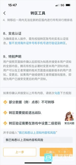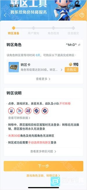 3、跳转至跨系统角色转移服务页面,查看转区说明,点击“下一步”按钮;