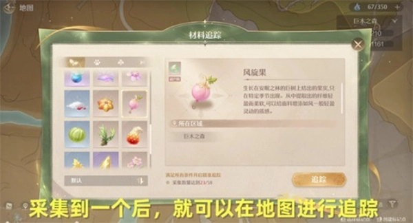 若没有开启风旋果地图追踪,可以先采集一个风旋果后激活地图追踪功能,方便后续收集。