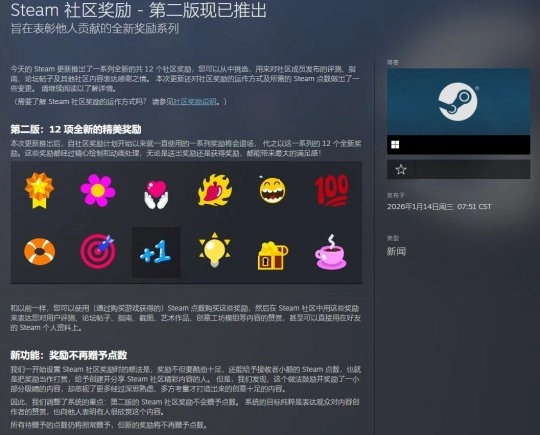 原社区的奖项机制支持用户用Steam点数购买动画表情图标赠送给其他用户,收到奖励的人能得到少量点数作为回馈。但这种设计在实际运行中形成了不良循环:一些用户故意发布低质量或带有争议性的内容,目的是吸引带有嘲讽意味的“小丑”奖项,进而获取平台点数。Valve在公告里承认,旧系统“对少数博眼球的内容起到了助长和奖励作用,却没能让更多经过深思熟虑的创意内容得到应有的关注”。