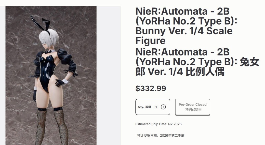 良笑社(Good Smile Company)今日推出了以《尼尔:自动人形 Ver1.1a》动画形象为原型的2B(寄叶二号B型)兔女郎造型1/4比例手办,该手办售价为333美元。