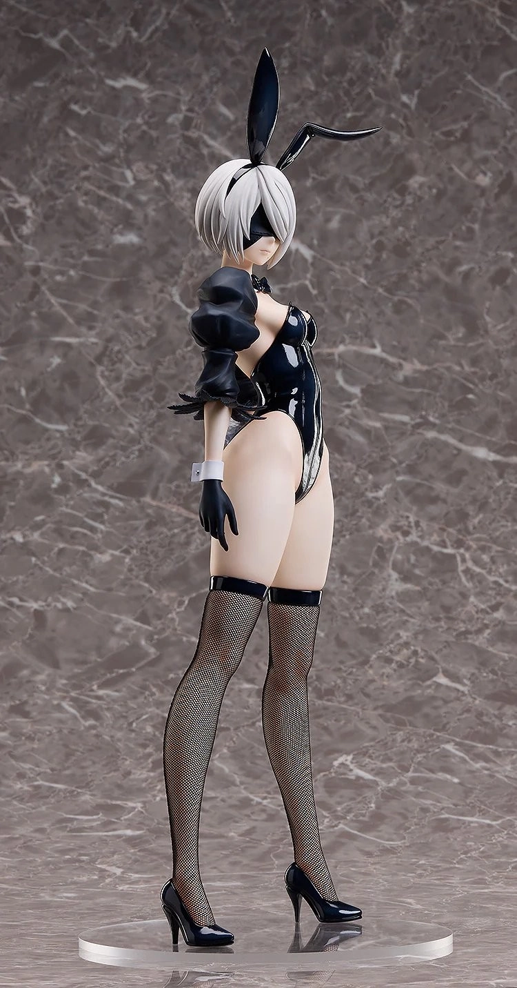 此款手办在保留2B标志性设计元素与神秘气质的同时,以动画中登场的兔女郎造型呈现,并附赠可替换的无护目镜面部配件。目前该手办已在官方渠道开启预售。
