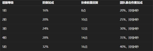 2、当角色施放治疗效果时,为周围队友提供团队暴击伤害加成(不可叠加)。