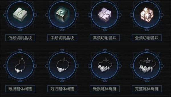 破损隧体绳链、低频切削晶块、中频切削晶块、微损隧体绳链、完整隧体绳链