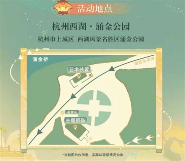 活动期间,涌金公园内会设置多处原神主题的内容,包含艺术展示、主题展陈以及互动玩法,面向玩家和游客开放。