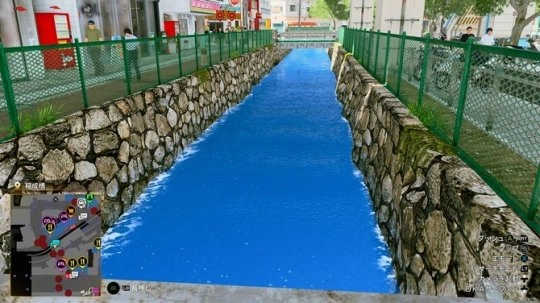 玩家反馈的问题主要集中在游戏里琉球街的窪地川区域,这条小河的画质表现明显不佳,呈现出的效果仿佛还停留在上个世纪。
