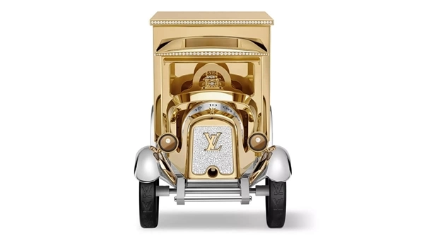 这款台钟复刻了20世纪初路易威登标志性的雪铁龙B10厢式货车造型——这些车辆曾穿梭于巴黎街头,运载LV标志性硬箱。