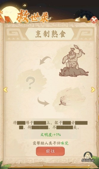教化万民:伏羲可使用救世录,将其中记载的技术教授给部落人民,以获得【文明值】,族长也可以进行【推演加速】获得大量文明值。