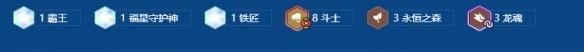 1、推荐大家前期可以拿任意斗士天选或永森大树天选,搭配4斗士或者3森林,后排可以用2神射手或、刺客或单挂劫过渡。