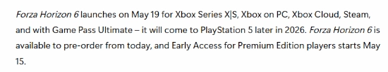 此外,官方已确认《极限竞速:地平线6》将在“今年晚些时候”登陆PlayStation 5平台,这也就表示PS5玩家能够在2026年年底之前体验到这款游戏作品。