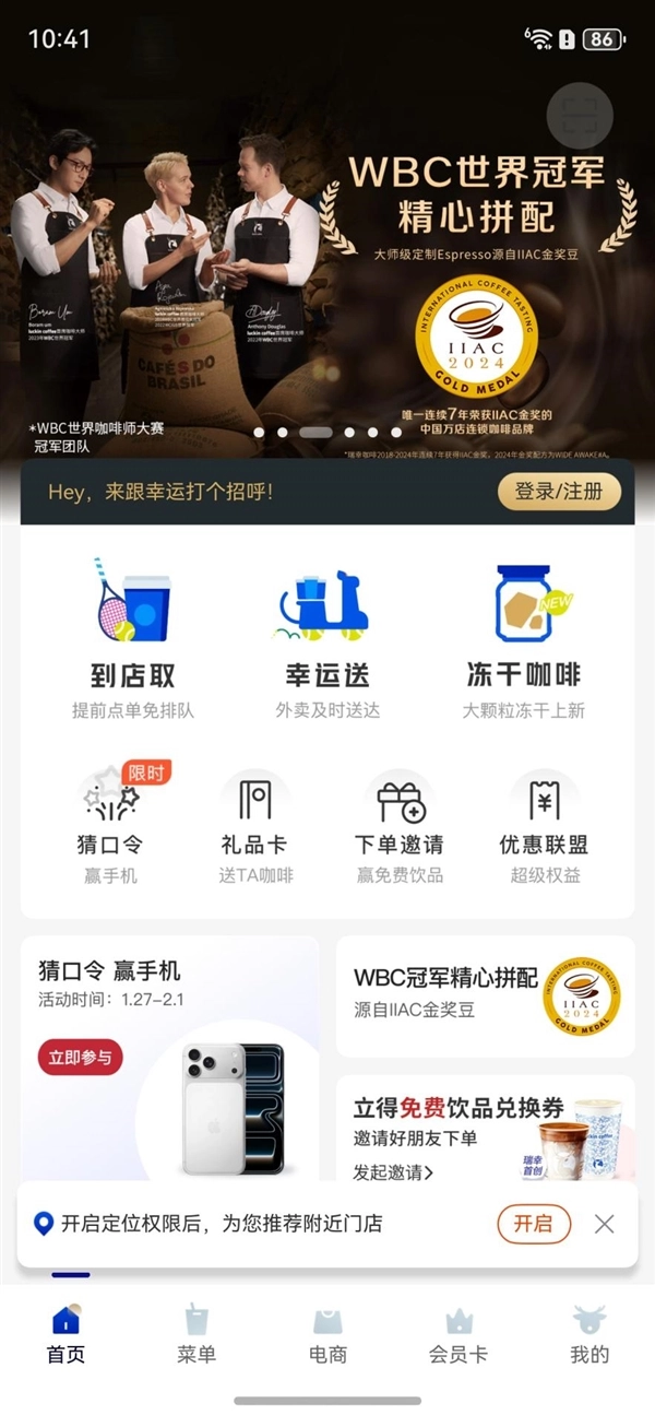 鸿蒙版瑞幸咖啡的蜕变也让人眼前一亮,同样以 25 次更新的高频迭代,完成了从基础点单工具到全场景服务平台的升级。一年前,它还只支持首页、菜单、我的三个基础板块,连优惠活动都看不到。而现在,不仅补齐首页、菜单、电商、会员卡、我的五大版块,功能完备度高达 98.8%,三端体验高度一致。
