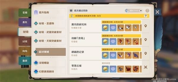 由于连续好几期幽境危战的更新时间都是周三,估计以后也都是周三更新了。我都是固定周一去打消耗减半的周本(征讨领域)3次,这样就不怕忘记打了。如果之后一直是固定周三更新的话,那么紊乱爆发期是在开启后第二周周五结束,所以只有那一周是周六周日打周本,其他时间固定周一打。
