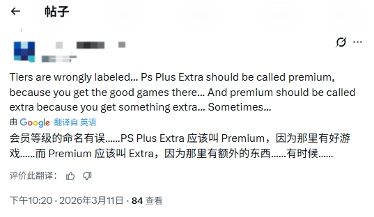 部分用户对服务分级提出建议,认为当前档位命名与内容不匹配,建议调整Extra与Premium档位的命名方式以更好反映实际内容。