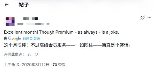 在相关信息的社交媒体评论中,多名Premium订阅用户表达不满。有用户表示该档位"形同虚设",也有用户认为每月一款游戏的更新频率"难以匹配订阅成本"。