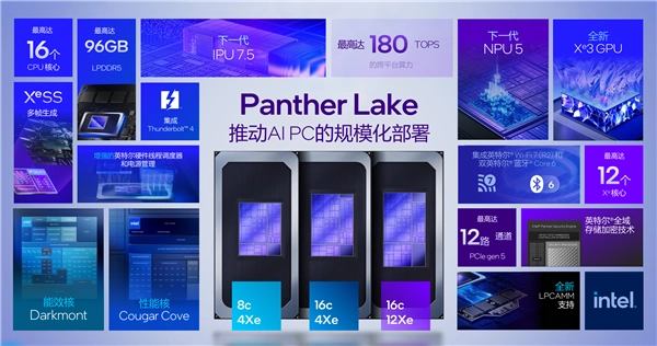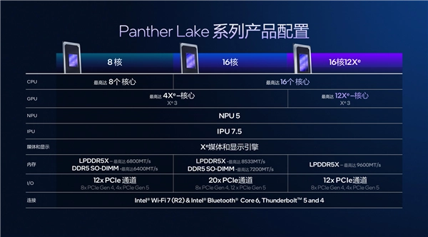 除此之外,X7 358H处理器基于Panther Lake架构,采用18A先进制程,拥有16核心(4个P核+8个E核+4个LPE核),线程数达16,睿频最高可达4.8GHz,缓存容量18MB,处理器最大Turbo功耗可高达80W,在性能与能效比之间实现完美平衡,既能满足高负载任务需求,又能有效降低功耗与噪音。
