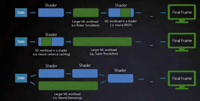 简单来说,这些工具能让开发者直接通过DirectX运行AI任务,而不需要针对不同显卡品牌编写专门的代码。这对于神经渲染、AI超分(缩放)、贴图工具等功能非常重要,能确保这些特效在高速运行的同时,不干扰游戏的正常性能。