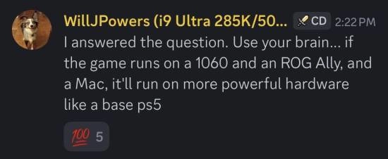 Will指出,既然游戏能在这些相对“弱势”的设备上正常运行,那么面对硬件规格远比它们强大的PS5基础版,自然也可以。