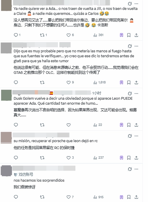 还有不少粉丝们哀求道:“不管有没有艾达,这个 DLC 请务必在今年内发售,求求卡普空别让我们等太久!”