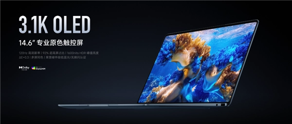 据了解,小米笔记本Pro 14配备14.6英寸OLED专业原色触控屏,3.1K分辨率,支持120Hz刷新率,1600nits峰值亮度,同时搭载面积达129cm²的大尺寸压感触控板。