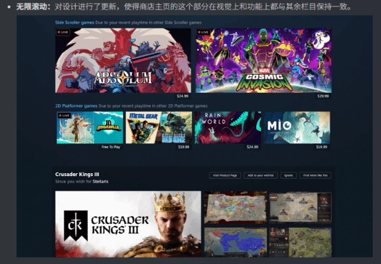 Steam今日对商店页面的设计进行了更新,该更新目前仅面向Beta测试用户开放,用户可通过Steam→设置→界面路径开启Beta测试。