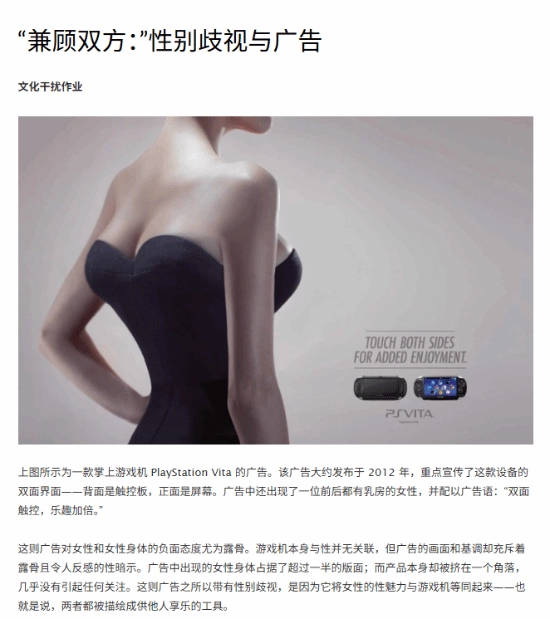 当时,不少媒体与公众批评该广告过度性化、物化女性,被认为带有明显的性别歧视倾向。