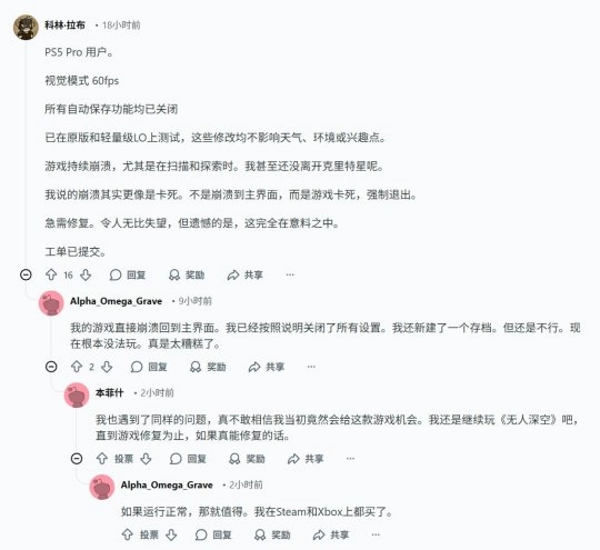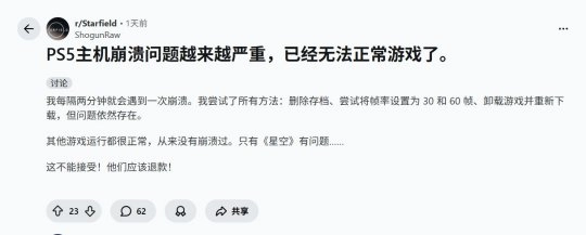 Reddit用户也反映了DF团队的类似经历。Reddit上,用户ShogunRaw解释说,《星空》PS5版“每两分钟”就会崩溃一次。虽然目前还没有发现造成这些问题的共同原因,但某些星球可能更容易出现问题。