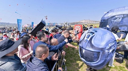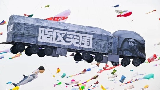 全长20米的“暗区大运”风筝飞上天!这款特制风筝以游戏内经典的“战神头”为车头造型,采用传统工艺立体制作。细节拉满的巨型风筝,成功征服气流,翱翔于潍坊的天空。它的亮相吸引了无数路人驻足仰望,堪称全场最硬核的“空中载具”。