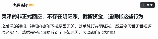 对于这一突发状况,视频作者九保杏树在社交平台发帖表示,自己之前发布的视频内容其实只是单纯的BOSS战演示,并没有涉及任何财务八卦。