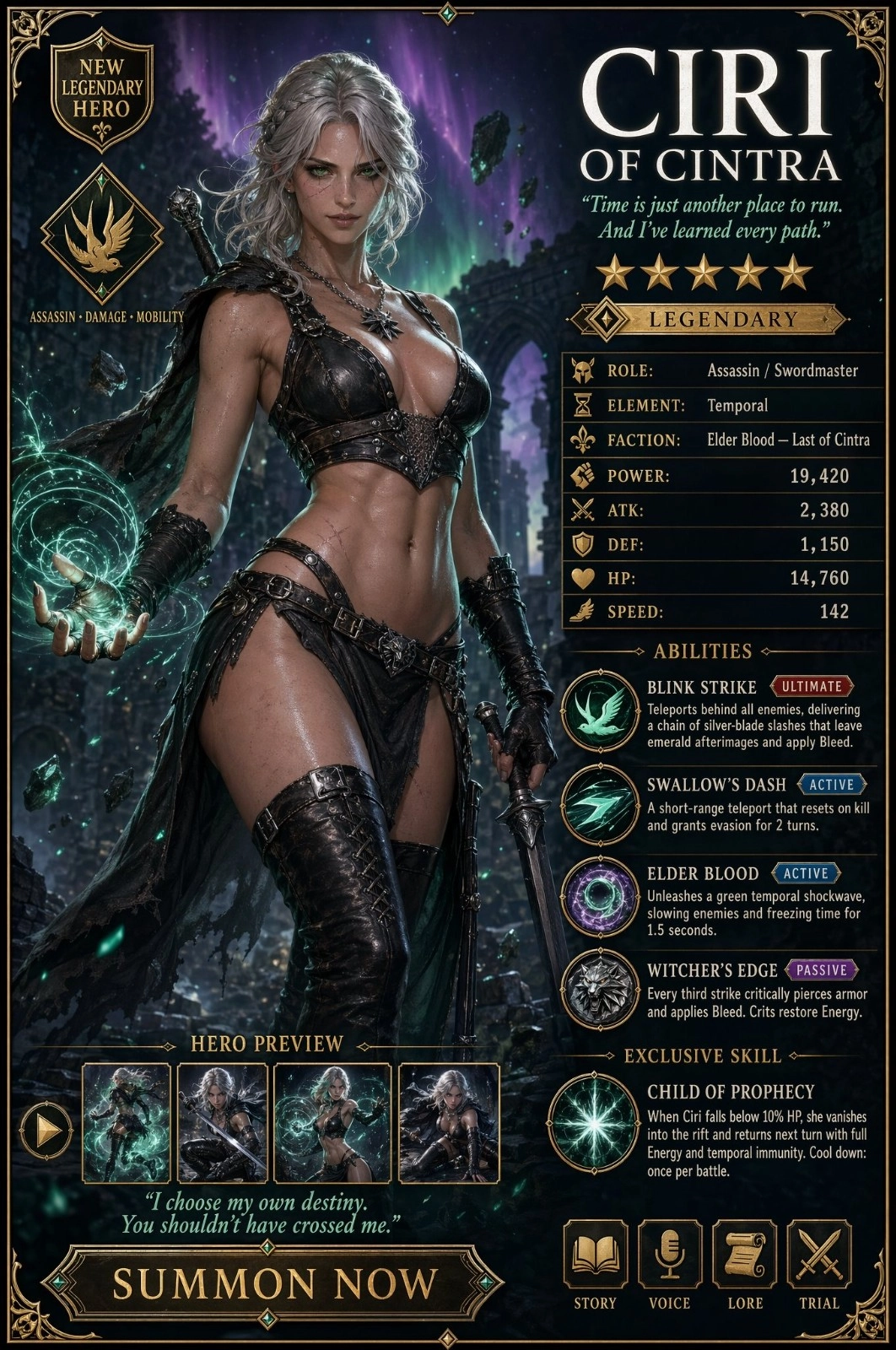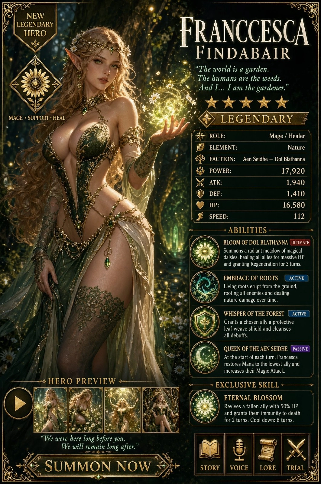 从图中能够看到,这些角色的形象经过了一定的风格化处理,并且融入了RPG元素。画面里包含角色介绍、技能、状态等文本信息,整体呈现出类似游戏UI界面的信息图风格。