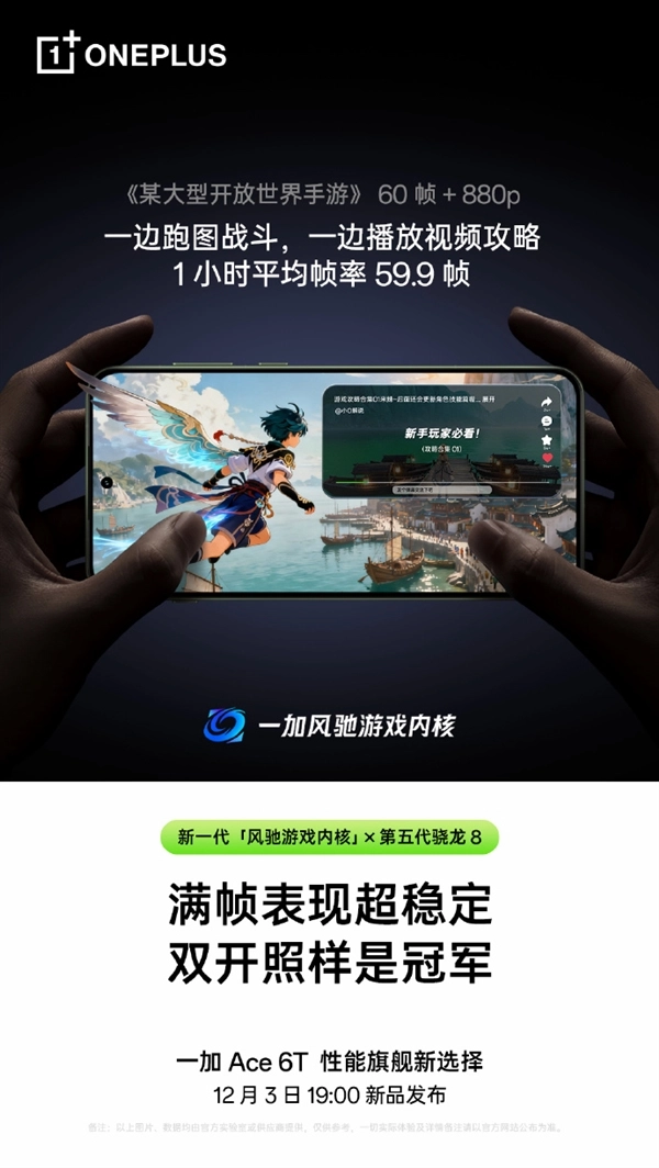 一加中国区总裁李杰表示,在独家写入新一代风驰游戏内核后,一加Ace 6T的第五代骁龙8 如同“开了挂”,堪称“满帧战神”。