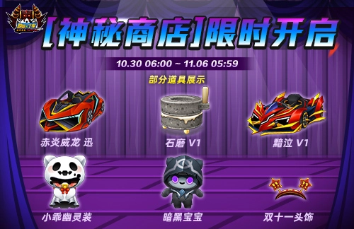 -10月30日 06:00 ~ 11月06日05:59 [挑战赛-幽灵战队]、<神秘商店>、无限加速RP赛(个人赛)限时开放;
