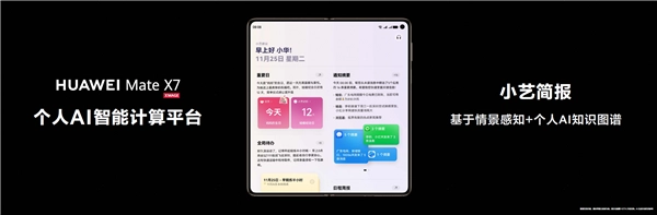 无论是在HUAWEI Mate80系列上的日常全能,还是依托HUAWEI Mate X7的折叠大屏实现的高效协同,小艺都能做到真正的“动动嘴就能办”。配合语音唤醒、长按导航条等方式,实现随时可调用、全场景响应的智能体验。