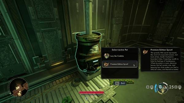 宠物可以通过你飞船内的宠物舱带出来。它看起来有点像桶,可以在工作台前面找到。与宠物舱互动可以让你从已解锁的宠物中选择一个激活。你一次只能激活一只宠物。