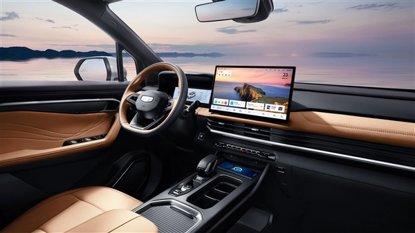 车内配备10.2英寸全液晶动态组合仪表和双色三辐式多功能平底方向盘,中控台中间的14.6英寸多媒体触控屏内置Flyme Auto智能座舱系统,支持智能语音交互、无界空间、高德在线实时导航以及智能手机互联等功能。