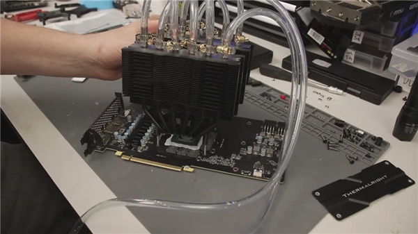 12月7日消息,硬件改装玩家TrashBench又推出了一项新的改造计划:把普通的CPU风冷散热器改装成显卡一体式水冷散热器,以此来尝试极限超频。