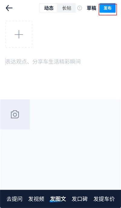 3、进入发布功能界面后,输入自己的车辆信息以及价格等,还可以添加图片,最后点击右上角的【发布】选项即可。