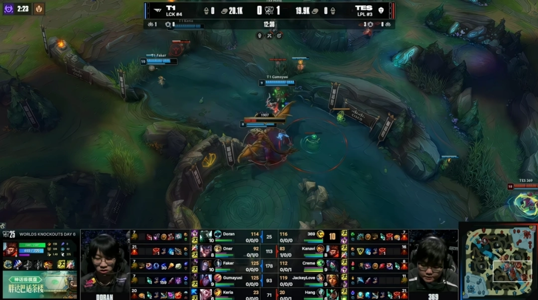 总体而言,TES的阵容较为缺乏开团能力,需要依靠前期争夺资源打架滚起雪球,依靠龙魂节奏快速扼杀对方,而T1的阵容相比之下则较为扎实,发条的后期能力不俗,韦鲁斯对普遍手段的TES阵容也存在明显的压制力。