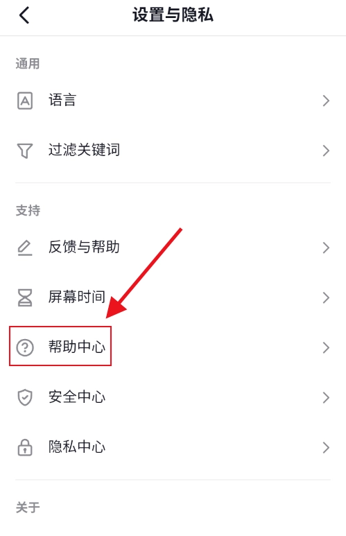 1、访问TikTok帮助中心(主页→右上角三个点-→帮助中心)