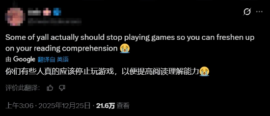 但也有人表示,这段话的意思应该是圣诞期间跟游戏“锁死”,并吐槽“你们有些人真的应该停止玩游戏,好好提高一下阅读理解能力。”但网友们抱怨称,Xbox的措辞应该更加清晰,这显然不能怪玩家们理解错误。