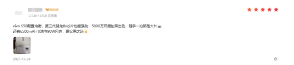 除了颜值与影像的核心优势,vivo S50系列在性能、续航等方面的均衡表现,也为口碑加分不少。性能方面,vivo S50系列搭载高通骁龙8系旗舰芯片,配合OriginOS 6系统的流畅优化,无论是运行大型游戏还是多任务处理,都能保持稳定流畅;全系搭载 6500mAh 蓝海电池,在轻薄机身与长续航之间取得平衡。