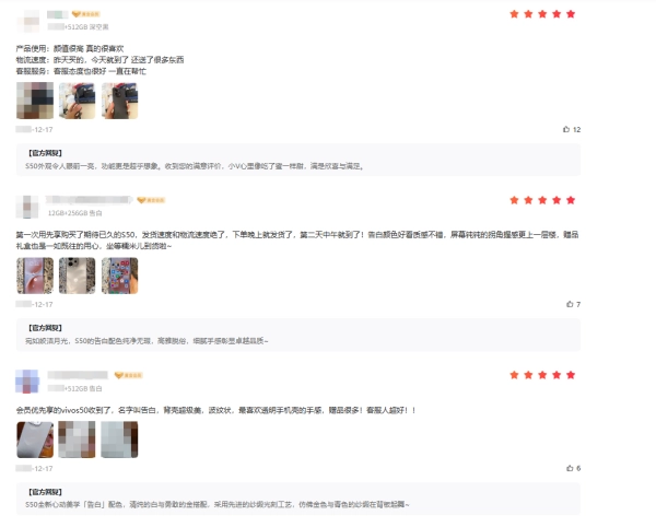 【手机频道】vivo S50系列全渠道开售之后,首批参与先享购的用户口碑评价现已正式公布。从用户反馈的好评内容来看,该系列凭借金属中框带来的质感、3种大师Live运镜的创意玩法、6.31英寸小直屏的舒适握持手感,以及旗舰级别的夜景闪光人像等核心优势,赢得了用户的一致认可。“颜值高”“影像好拍”“手感舒服”成为用户评价中的高频关键词,也进一步凸显了这款新机的高性价比与值得入手的特质。
