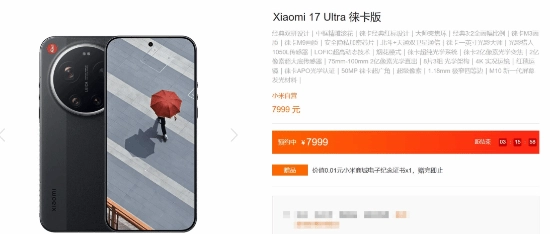 12月25日晚间,小米品牌正式推出其影像旗舰产品小米17 Ultra系列,该系列涵盖小米17 Ultra与小米17 Ultra徕卡版两款机型。值得注意的是,起售价为7999元的徕卡版机型很快便销售一空,不少小米用户(米粉)在小米集团总裁卢伟冰的微博评论区中分享了自己的订单截图。