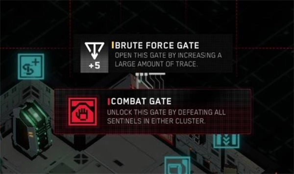 在这个例子里,门扉解锁的条件是“击败房间中所有的敌人”。你也可以“强行打开”门扉,但代价是打开这扇门扉会提升的踪迹值翻五倍。