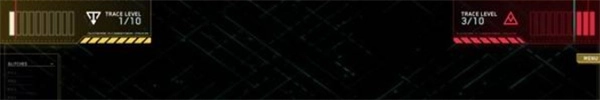 “踪迹”(黄色计量表)每增加10级,警报级别(红色计量表)就会增加1级。在这个例子中,玩家的“踪迹”级别共增加了31级,因此警报级别为3级。