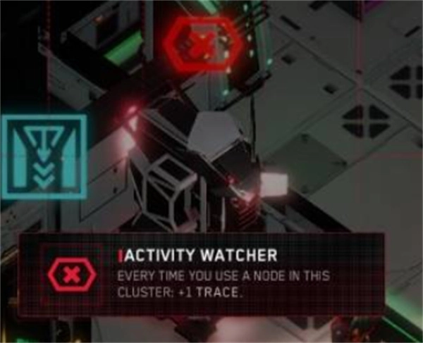 节点的周围的菜单会提醒你它是否受到守护者影响。在这个例子中,由于房间中存在“活动守护者”,所有交互都会生成 1 条额外的追踪信息。